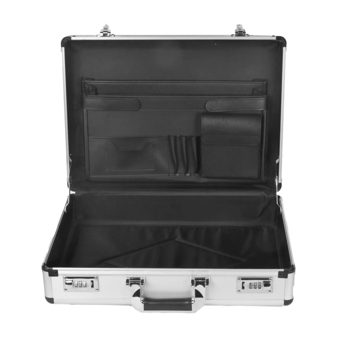 Der Aktenkoffer von Dermata zeichnet sich durch seine stabile, praktische und dennoch elegante Form aus. Der Kofferinhalt kann mit Zahlenschlösser gesichert werden. Die Innenaufteilung des Aktenkoffers sieht wie folgt aus: