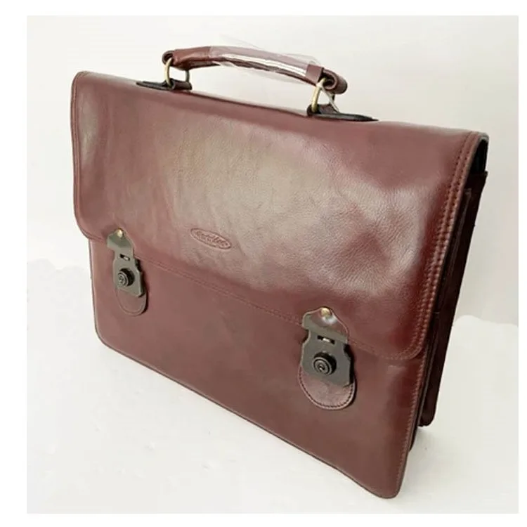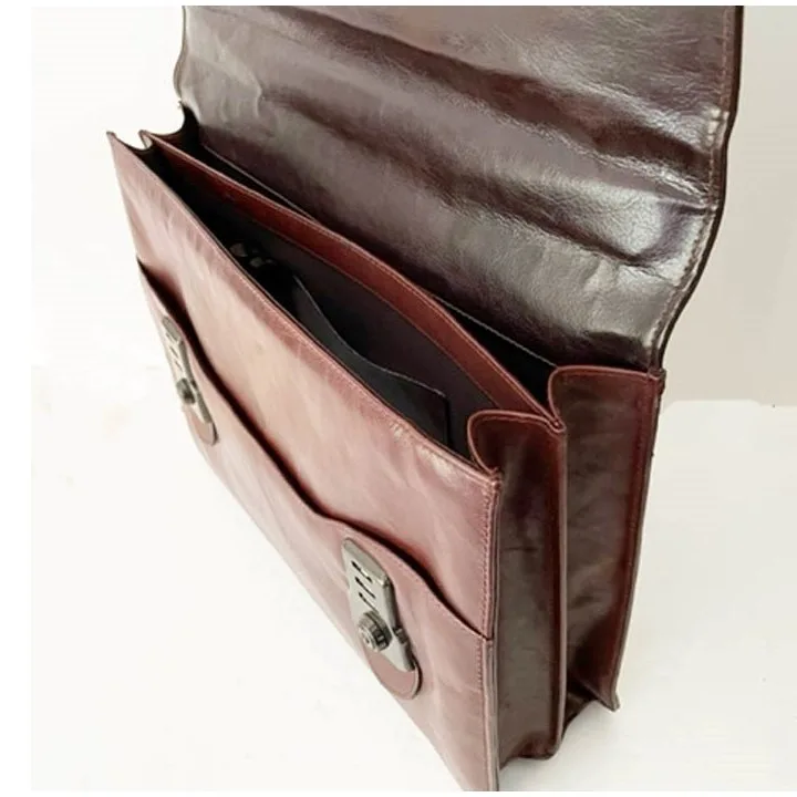 Der Klassiker unter den Aktenmappen! Leiterschlösser und Beschläge aus Messing antik, lange Vortasche zum Einschieben