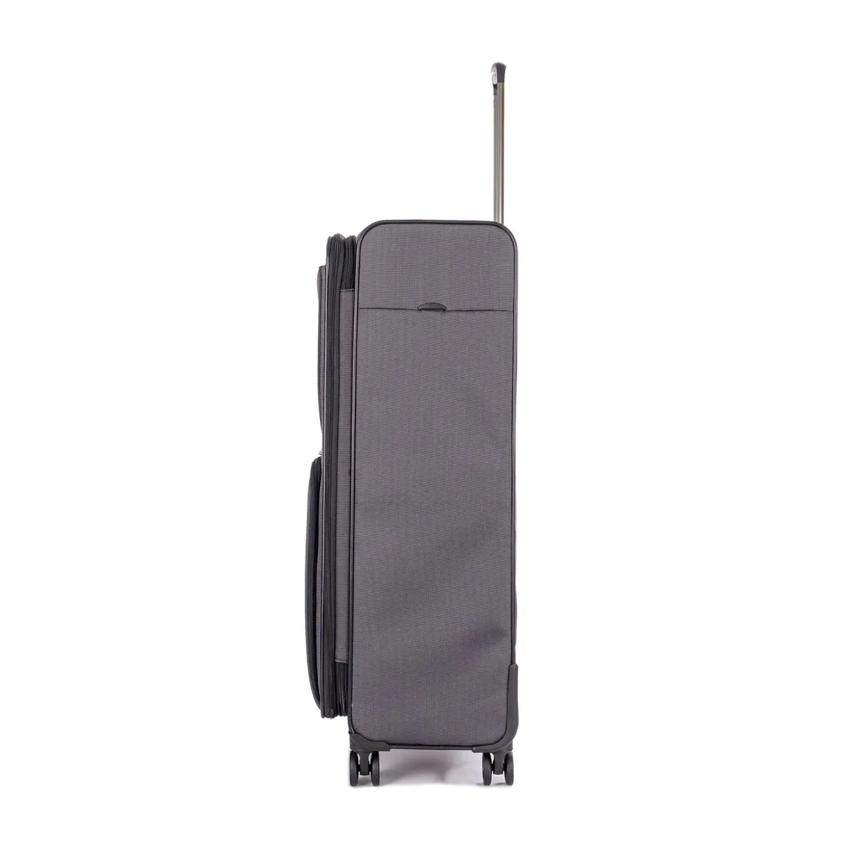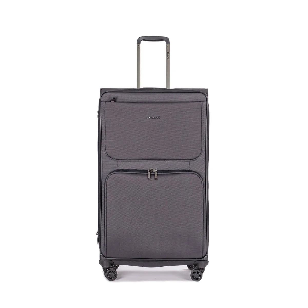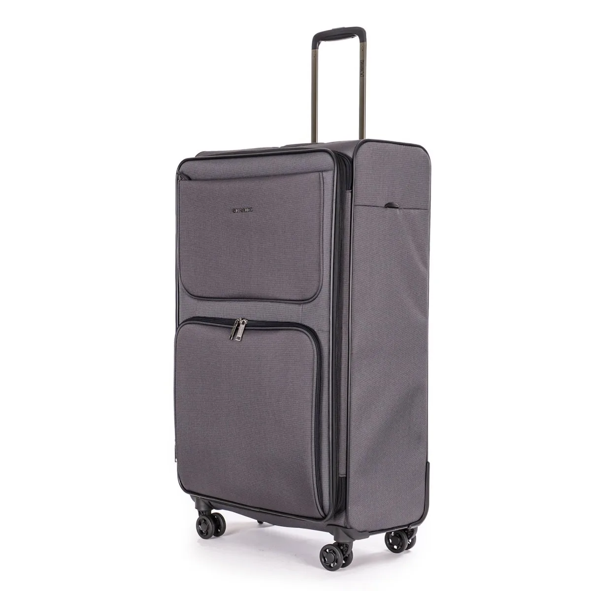 Die vier leichtläufigen 360° drehbaren Doppelrollen und der ergonomische Handgriff ermöglichen auch bei schwereren Lasten einen leichten Transport. Die beiden Aussenfächer ermöglichen einen leichten und sofortigen Zugriff. Das Hauptfach ist sehr geräumig und kann mit einem 2-Wege-Reissverschluss geschlossen werden. Die aus Polyester gefertigten Koffer haben zudem ein eingelassenes TSA-Schloss. Sollte der Platz nicht ausreichen kann der Koffer von 105 L auf 120 L erweitert werden. Mit STRATIC CONNECT NFC-Chip ausgestattet.
