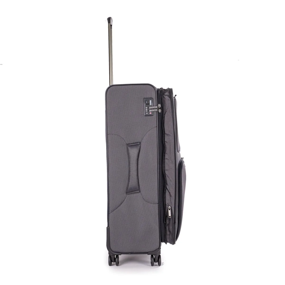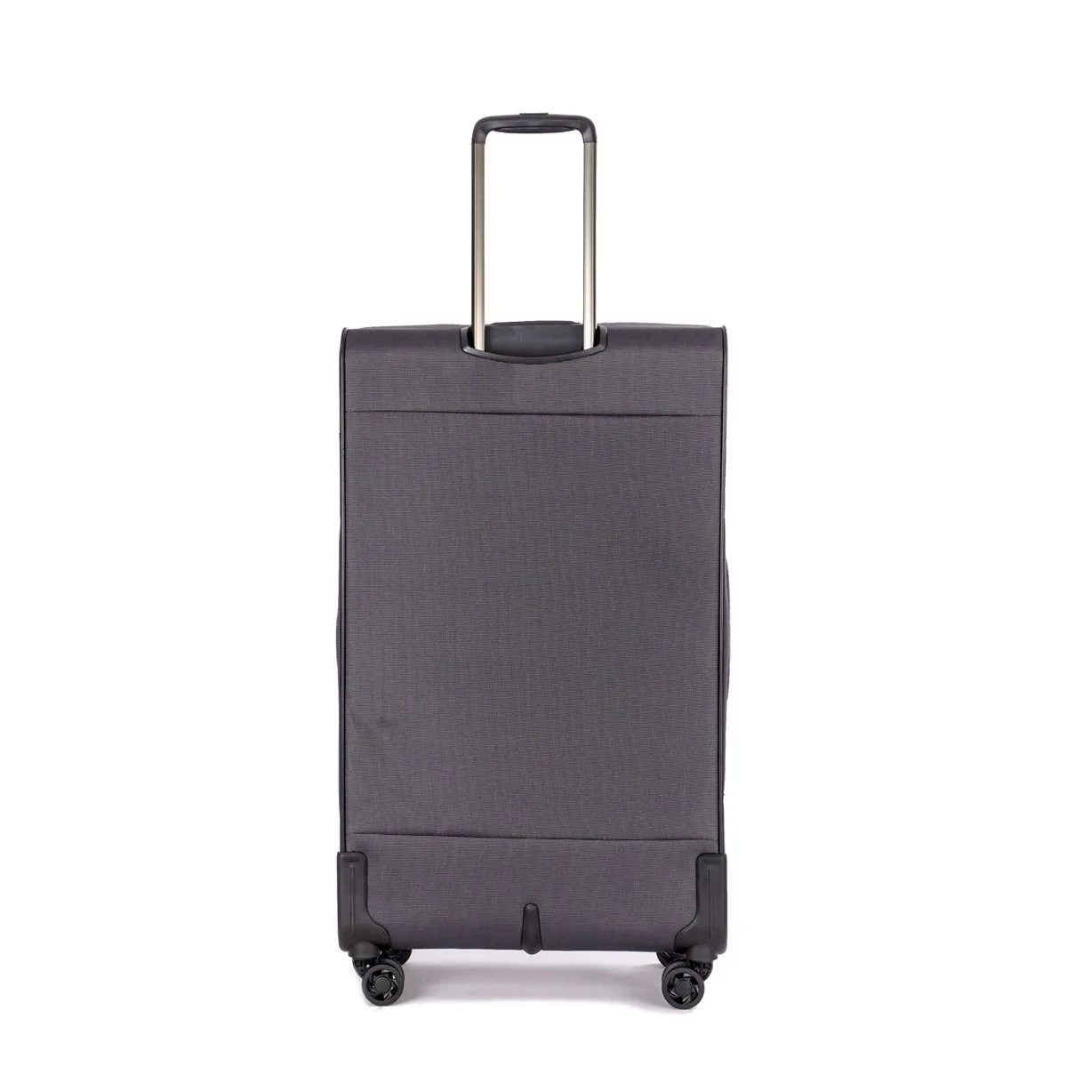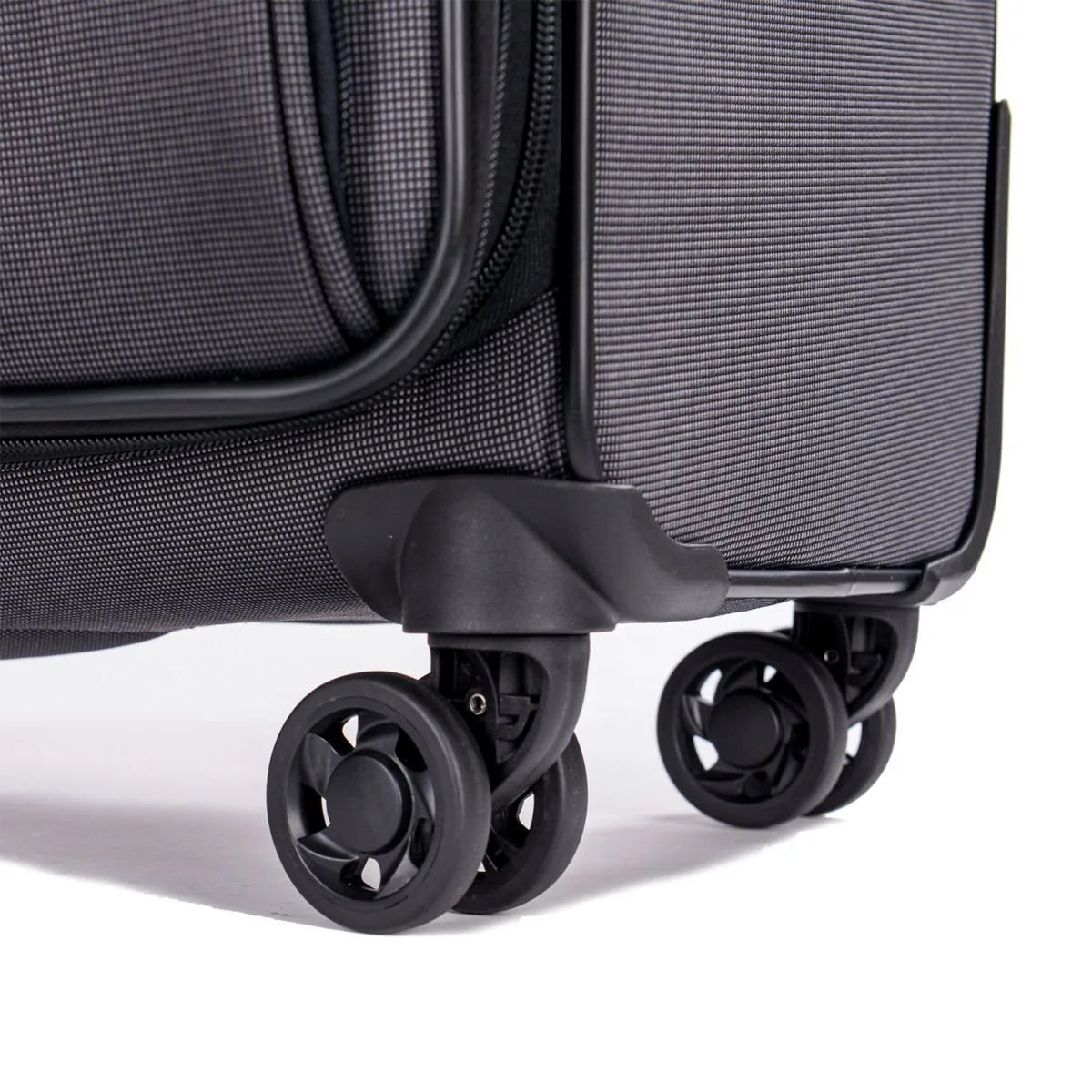 Die vier leichtläufigen 360° drehbaren Doppelrollen und der ergonomische Handgriff ermöglichen auch bei schwereren Lasten einen leichten Transport. Die beiden Aussenfächer ermöglichen einen leichten und sofortigen Zugriff. Das Hauptfach ist sehr geräumig und kann mit einem 2-Wege-Reissverschluss geschlossen werden. Die aus Polyester gefertigten Koffer haben zudem ein eingelassenes TSA-Schloss. Sollte der Platz nicht ausreichen kann der Koffer von 105 L auf 120 L erweitert werden. Mit STRATIC CONNECT NFC-Chip ausgestattet.