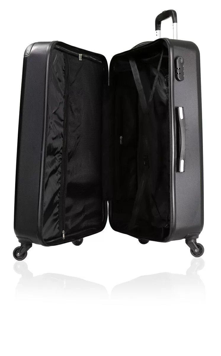 Schlichter Trolley mit folgenden Vorzügen: 4 Rollen | innen einseitig verschliessbar mit