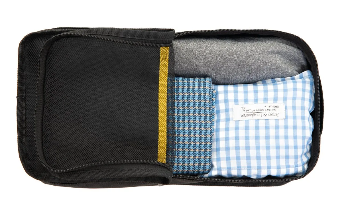 Großes Hauptfach für Socken, Unterwäsche und andere Kleinigkeiten. Leichtes, extra-strapazierfähiges Premium-Nylon 1680D. Netzbespannung auf der Oberseite für Sichtbarkeit und Belüftung. Doppelter Reißverschluss für einfachen Zugang und Tragegriff oben für den Transport.