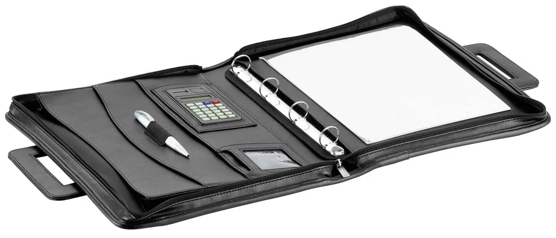 genarbtes PU, Ringmechanik, herausnehmbarer Taschenrechner, Organiser, Griffe einsteckbar