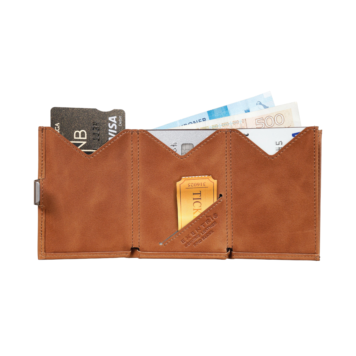 Jede EXENTRI Multiwallet ist ein Unikat! Leder ist ein natürliches Material und es kann zu geringen Abweichungen in Struktur und Farbe kommen.Schneller Kartenzugriff