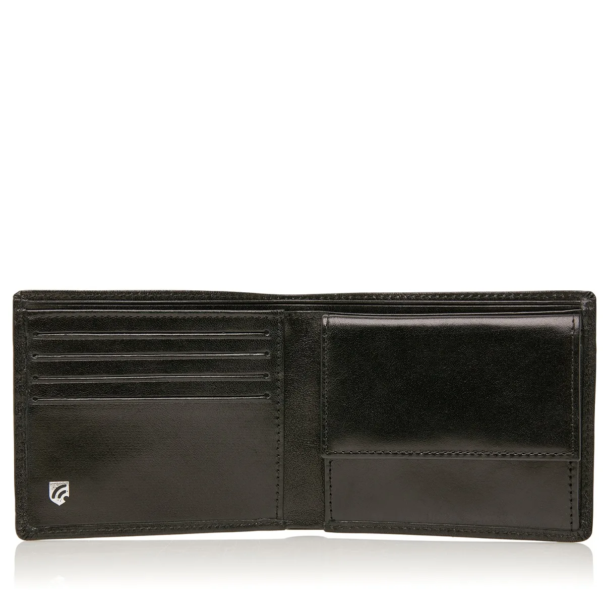 Elegante RFID Billfold-Geldbörse in einer handlichen Größe mit Fächern für Geldscheine und einem Fach für Münzen. Das Lederportemonnaie für Herren hat außerdem 8 Kreditkartenfächer. Die Gaucho-Kollektion ist mit einer High-Tech-Folie ausgerüstet, die das Auslesen Ihrer persönlichen Daten über den RFID-Chip auf Ihren Karten verhindert. Dieses exklusive Billfold-Portemonnaie aus der Gaucho-Kollektion von Castelijn & Beerens wird aus Stierleder hergestellt, das mit einem transparenten Farbstoff behandelt wurde, und ist mit dem eleganten C&B-Logo in einem Oval aus Leder versehen. Das Leder-Portemonnaie ist erhältlich in den Farben Schwarz, Mokka und Cognac.