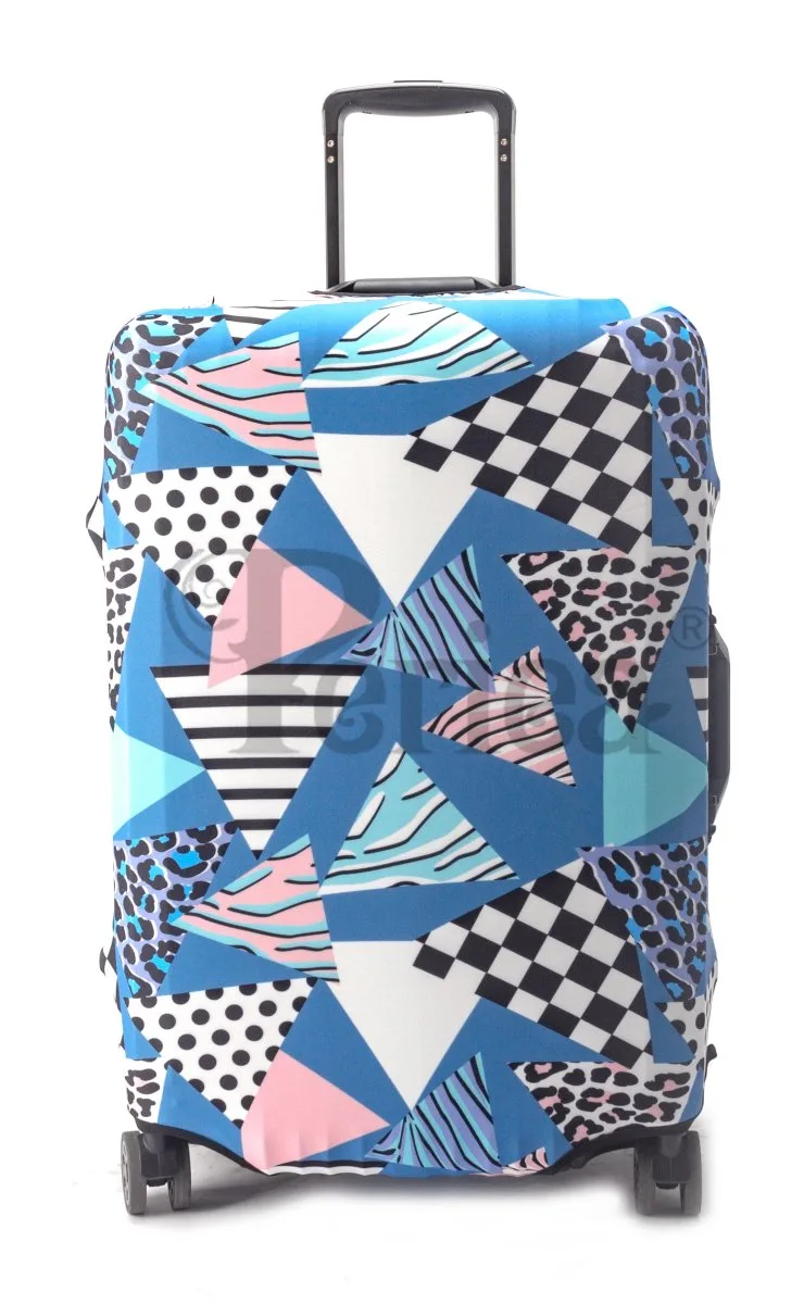 Dieser Kofferüberzug mit Gummizug schützt den Koffer vor Kratzern während des Transports, macht es einfacher, ihn bei der Gepäckausgabe am Flughafen zu erkennen und frischt das Äußere von alten Koffern auf! Die Hülle wird über den Koffer gestülpt und mit einem zusammensteckbaren Band und einem Reißverschluss befestigt, die beide unter dem Koffer verborgen bleiben. An der Oberseite der Gepäckabdeckung befinden sich 2 Aussparungen für den Zugang zum oberen Griff und zum ausziehbaren hinteren Griff, sowie eine weitere Aussparung für den seitlichen Griff. Bitte beachten Sie, dass sich diese seitliche Aussparung auf der rechten Seite des Koffers befindet, wenn Sie von vorne auf ihn schauen.