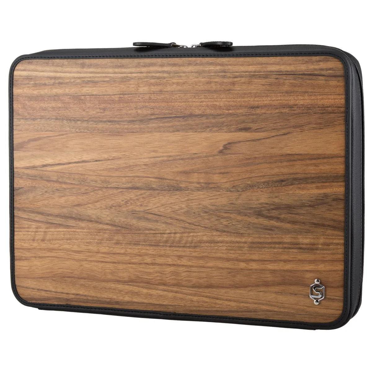 Die Tasche bietet mit ihren zahlreichen Fächern ausreichend Stauraum für alle Dinge rund um Notebook & co. Ihren Platz finden bspw. ein 15 Zoll Laptop, Stifte, Dokumente, Taschenrechner, Visitenkarten etc. Dieser stilvolle Begleiter lässt sich rundum mit einem Reissverschluss öffnen, ist aus der Holzart Amazaque gefertigt und mit hochwertigem Rindleder in schwarz kombiniert. Das Innenleben ist aus Rindleder und einer weichen Polsterung hergestellt worden.