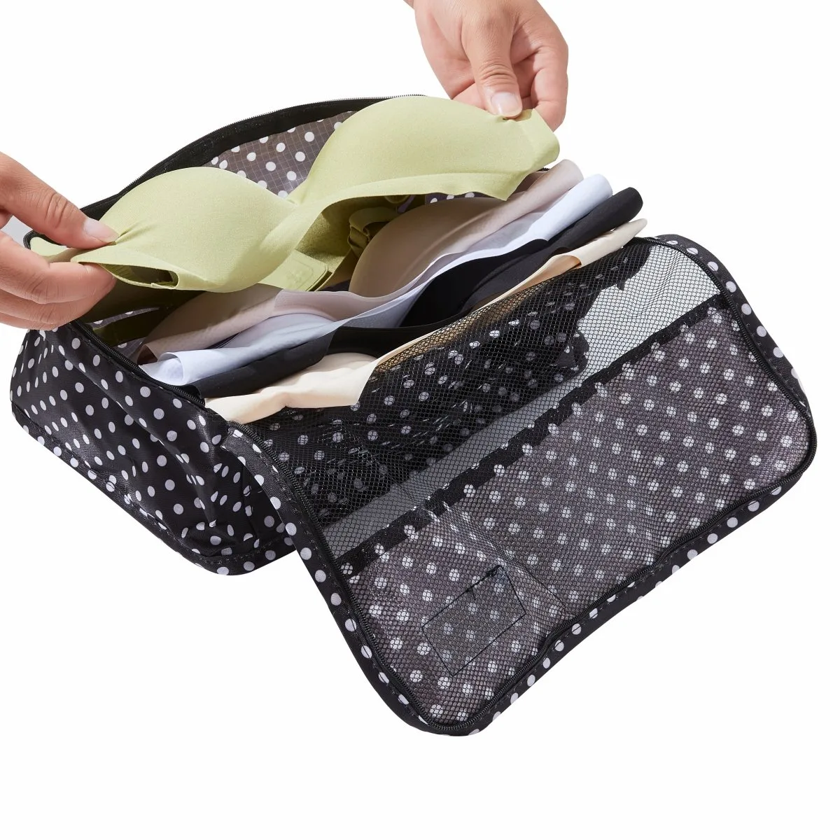 Die verschiedenen Taschen eignen sich für Kleidung, Schuhe, Make-up & Kosmetik, Unterwäsche, Dokumente und Accessoires. Nicht nur für Koffer und Gepäckstücke, sondern auch fürs tägliche Handgepäck wie Rucksack oder Handtasche. Ausgestattet mit einem hochwertigen Doppelreißverschluss, einem Tragegriff an der größten Tasche, so dass sie auch als Handgepäckstück verwendet werden kann, und einem Netzfenster, damit Sie sehen können, was sich darin befindet.