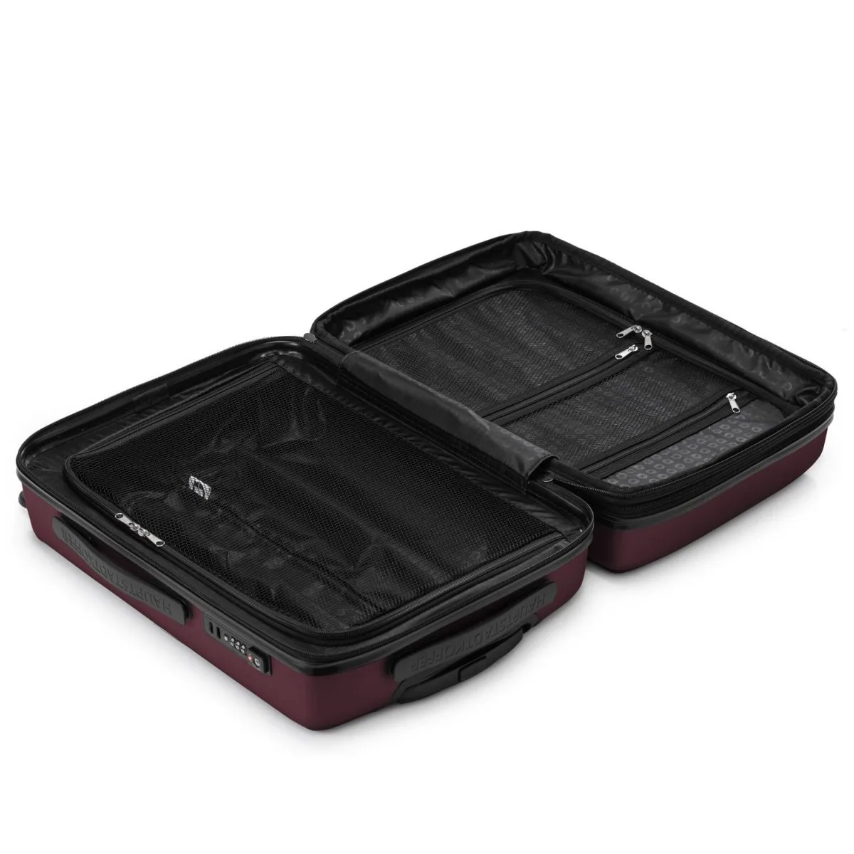 Handliches Reisegepäck aus 100% ABS, besonders bruch- und kratzfest. Flache Hartschale im dynamischen Look. Mit verstärkter 8 cm Koffererweiterung (bis zu 40% mehr Volumen) für enormes Packvolumen. Sicheres TSA-Zahlenschloss, versenkte Doppelrollen für mehr Stauraum und praktisches Interieur.