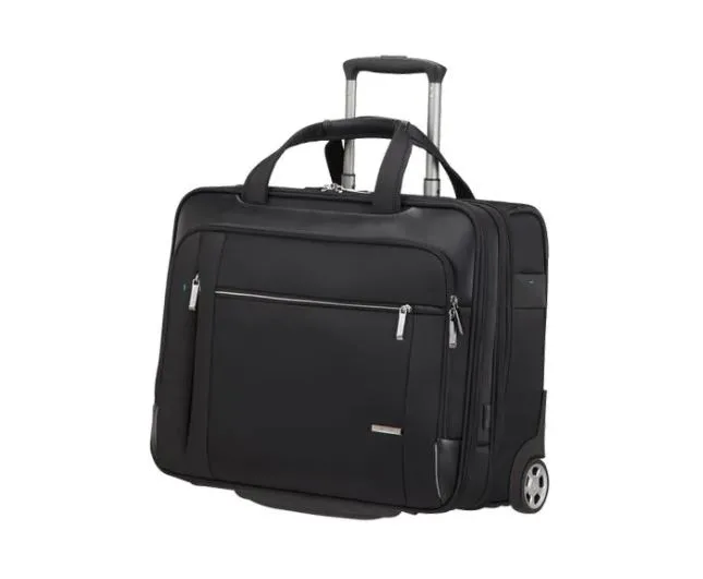 Die Spectrolite 3.0 Laptoptasche mit Rollen hält durch ihre hervorragende Qualität den hohen Belastungen auf Reisen optimal stand. Auf das Gepäck von Samsonite ist stets Verlass. Durch zusätzliche Organisationsmöglichkeiten, einen USB-Anschluss und eine verbesserte Zugänglichkeit des Hauptfachs setzt Spectrolite 3.0 neue Maßstäbe für Geschäftsreisen. 2-teiliger Teleskopgriff und 2 Laufrollen, zeitlos edles Design mit einzigartiger Kombination aus Polyester, Nylon und PU. Handgepäcktaugliche Abmessungen für die meisten Fluggesellschaften, Laptopfach (bis 17.3″), Tabletfach, Hauptfach mit interner Organisation. Zahlreiche Einschübe für Dokumente, Schreibmaterial etc. ergänzen die übersichtliche Innenunterteilung. Verschliessbare Reissverschlüsse.