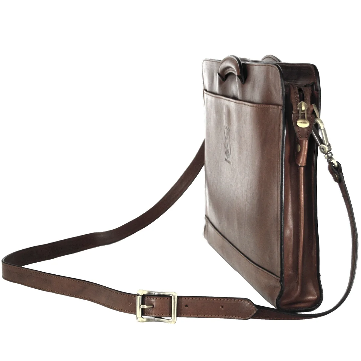Der richtige Begleiter für Kundenbesuche und Büro. Kann auch durch den abnehmbaren und verstellbaren Leder-Schulterriemen über der Schulter getragen werden. Laptop, Dokumente, Handy, Geldbeutel etc. finden ihren geeigneten Platz.